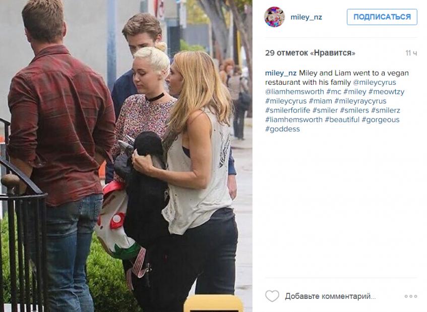И так продолжалось до 8 апреля. В этот день звезды были замечены вместе на ужине с семьей Лиама, который состоялся в одном из вегетарианских ресторанов Лос-Анджелеса. Кроме влюбленных папарацци удалось запечатлеть братьев звезды фильма «Голодные игры» Криса и Люка, а также жену Люка — Саманту.