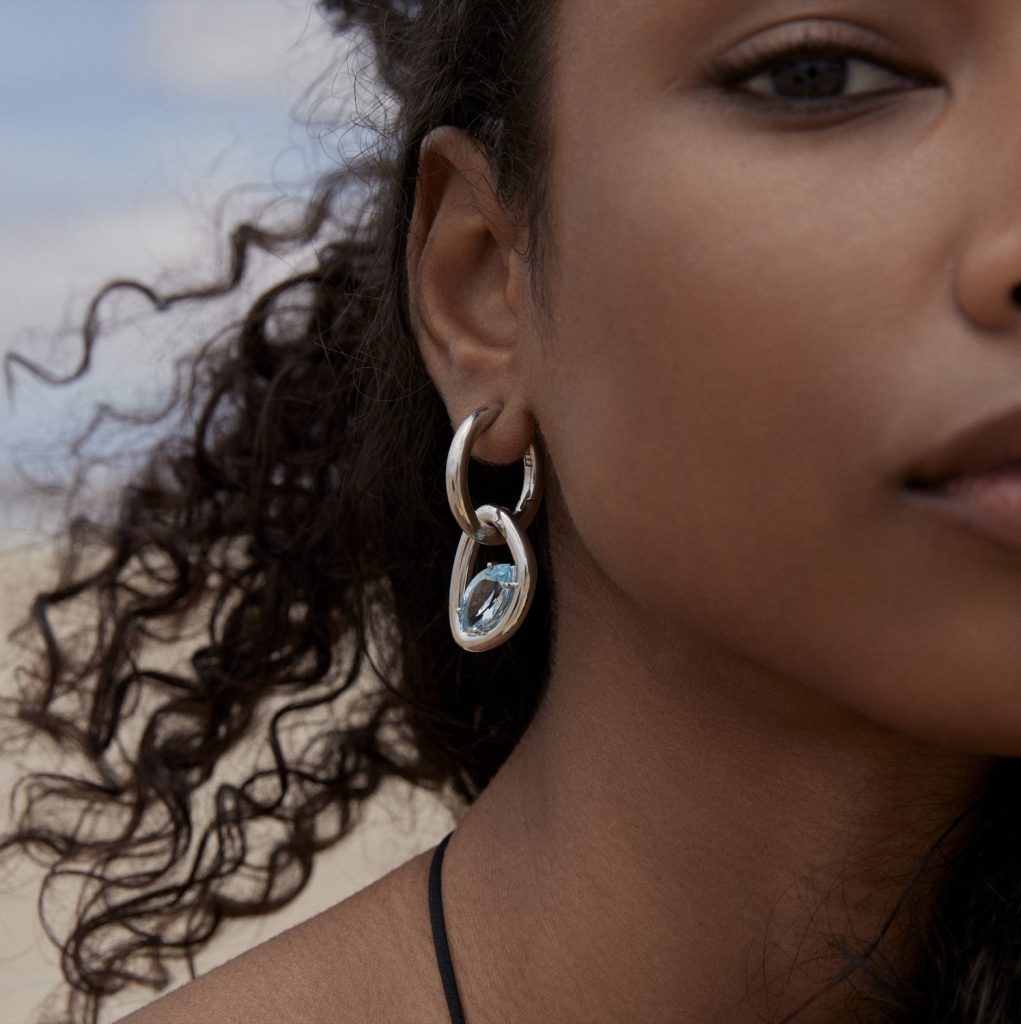 Ассиметричные формы, контраст объемов и привычные натуральные камни в непривычном амплуа – мастера бренда смотрят на украшения под пятым углом. Команда марки продвигает идею ювелирной многослойности. Взглянуть хотя бы на союз сережек-хупов и подвесок-петель, в которых будто утопают голубые топазы – конструктор для взрослых во плоти. Отдельных лавров заслуживают съемки бренда: украшения, соседствующие с разными частями тела – лучше концепции и не придумаешь.