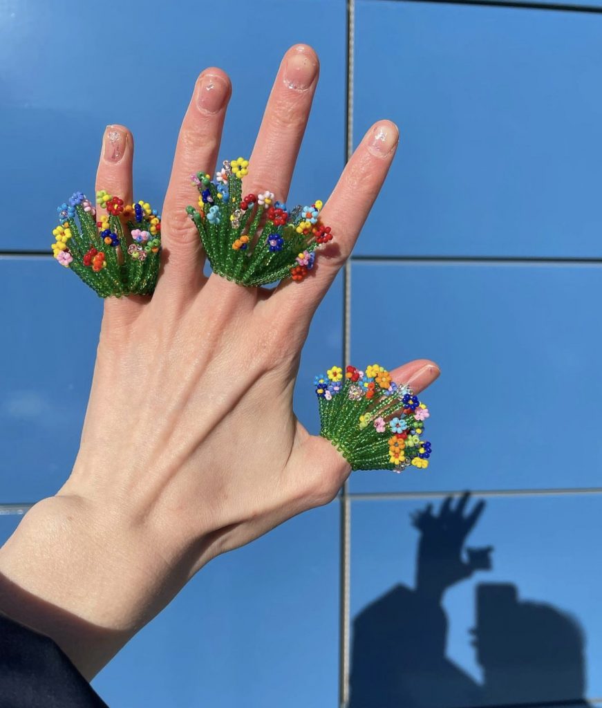 Еще один «бисерный» конкурсант. Только диаметрально противоположный предыдущему: питерский дизайнер Аня Рубан как раз и славится украшениями, отсылающими в школьные годы чудесные. И справляется с задачей на твердое отлично – ювелир создает кольца, анклеты и даже чехлы для кейсов от наушников из японского бисера. Наш однозначный фаворит – разноцветные варианты-клумбы, которые не только можно, но и нужно носить в нескольких экземплярах. И хоть пока дизайнер принимает заказы через аккаунт в запрещенной соцсети, уверены, что совсем скоро границы прекрасного будут только расширяться.