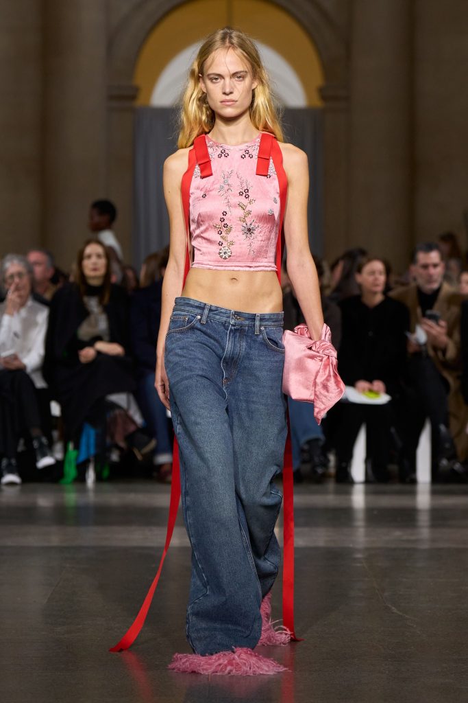 Чтобы как-то сгладить апатию следующего осенне-зимнего сезона дизайнеры предлагают нам обратить внимание на ленты. Их в этот раз на подиуме было особенно много. Причем речь не только о привычных бантах. В сезоне осень–зима 2026 ленты становятся полноценным декоративным приемом: их завязывают на корсетах, вплетают в платья, используют как длинные завязки на юбках и топах. У Bora Aksu они подчеркивают романтичное настроение коллекции и отсылают к викторианской эстетике. В коллекции Erdem ленты работают как часть сложного декора платьев, добавляя образам винтажный характер. А у Natasha Zinko и Simone Rocha этот элемент становится почти драматичным акцентом.