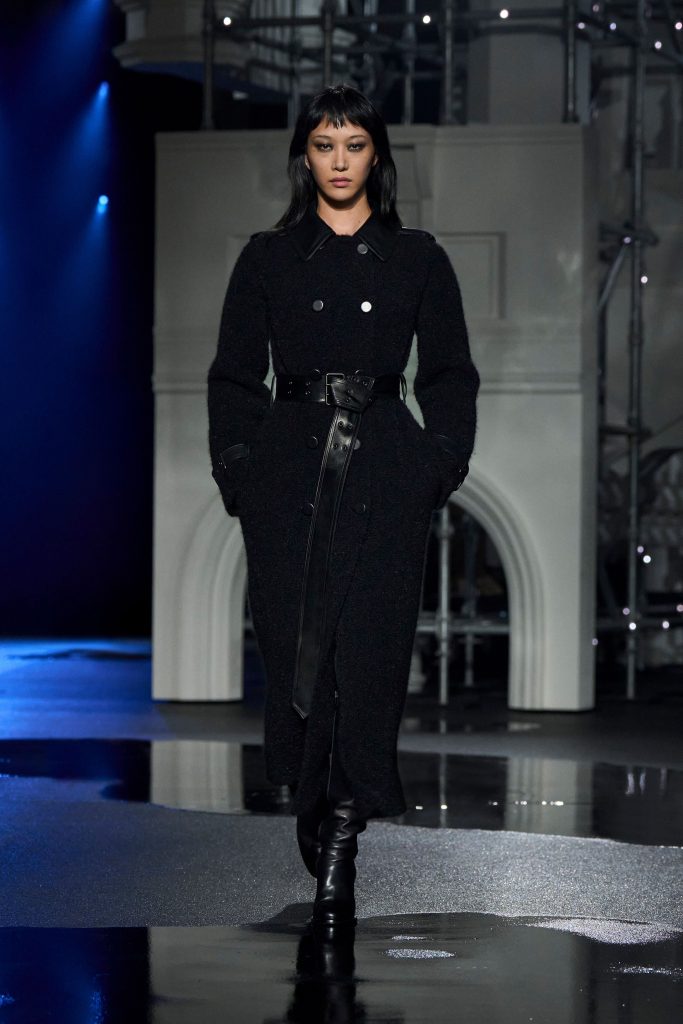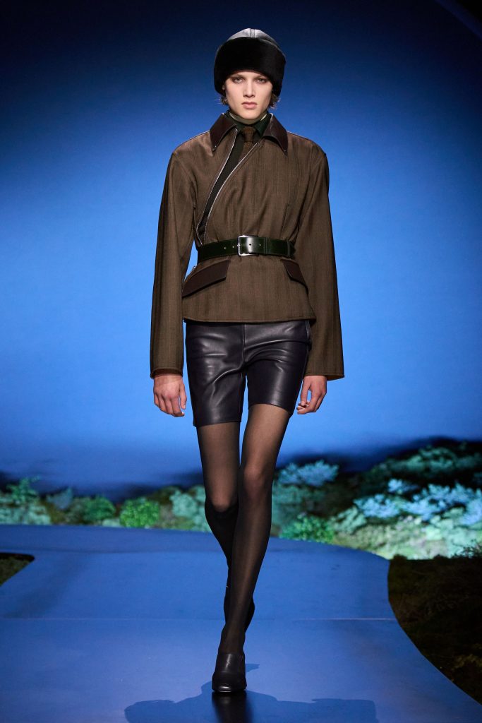 Еще один заметный прием осенне-зимнего сезона 2026 – ремни, которые из утилитарной детали становятся ключевым элементом образа. Дизайнеры предлагают носить их не только с брюками, но и поверх пальто, жакетов, платьев и даже трикотажа. Например, в коллекции Bottega Veneta широкие кожаные ремни фиксируют объемные пальто и костюмы, формируя четкий силуэт. У Burberry этот прием используется для создания более строгих и графичных образов – ремень буквально собирает весь комплект. А в коллекции Hermès ремни появляются почти в каждом луке, подчеркивая талию даже у самых минималистичных вещей.