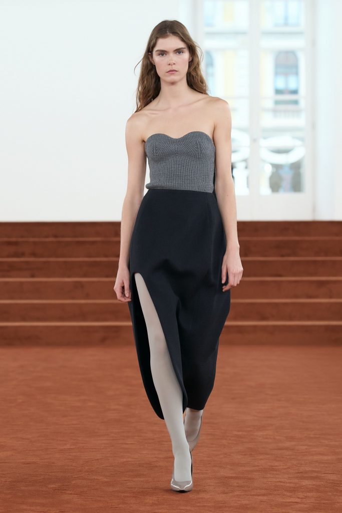 Юбки миди и макси кажутся слишком строгими и скучными? Дизайнеры тоже так считают, поэтому решили добавить немного сексуальности и сделали ставку на разрезы. Например, у Courrèges юбки с высоким разрезом выглядят почти архитектурно и отлично сочетаются с простыми топами и водолазками. У Akris этот прием работает более элегантно: разрезы появляются на строгих миди и платьях, создавая аккуратный баланс между сдержанностью и женственностью. А Balenciaga и Area предлагают более драматичную версию тренда – с глубокими разрезами и контрастом объемного верха и узкого силуэта юбки.