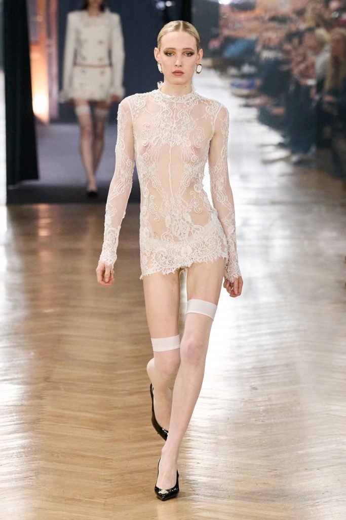 Кажется, дизайнеры решили, что осенне-зимний сезон – не повод отказываться от откровенной романтики. В коллекциях осень-зима 2026 кружево снова выходит на первый план и появляется в самых разных интерпретациях – от деликатных вставок до почти полностью прозрачных платьев. Например, у Ann Demeulemeester кружево работает на создание готической эстетики и сочетается с грубой обувью и многослойностью. В коллекции Blumarine оно выглядит максимально чувственно – в виде почти невесомых платьев, напоминающих белье. А Saint Laurent идет еще дальше и предлагает носить кружево как полноценный вечерний образ – с прозрачными юбками, корсетами и сложным декором. Одним словом, choose your fighter.