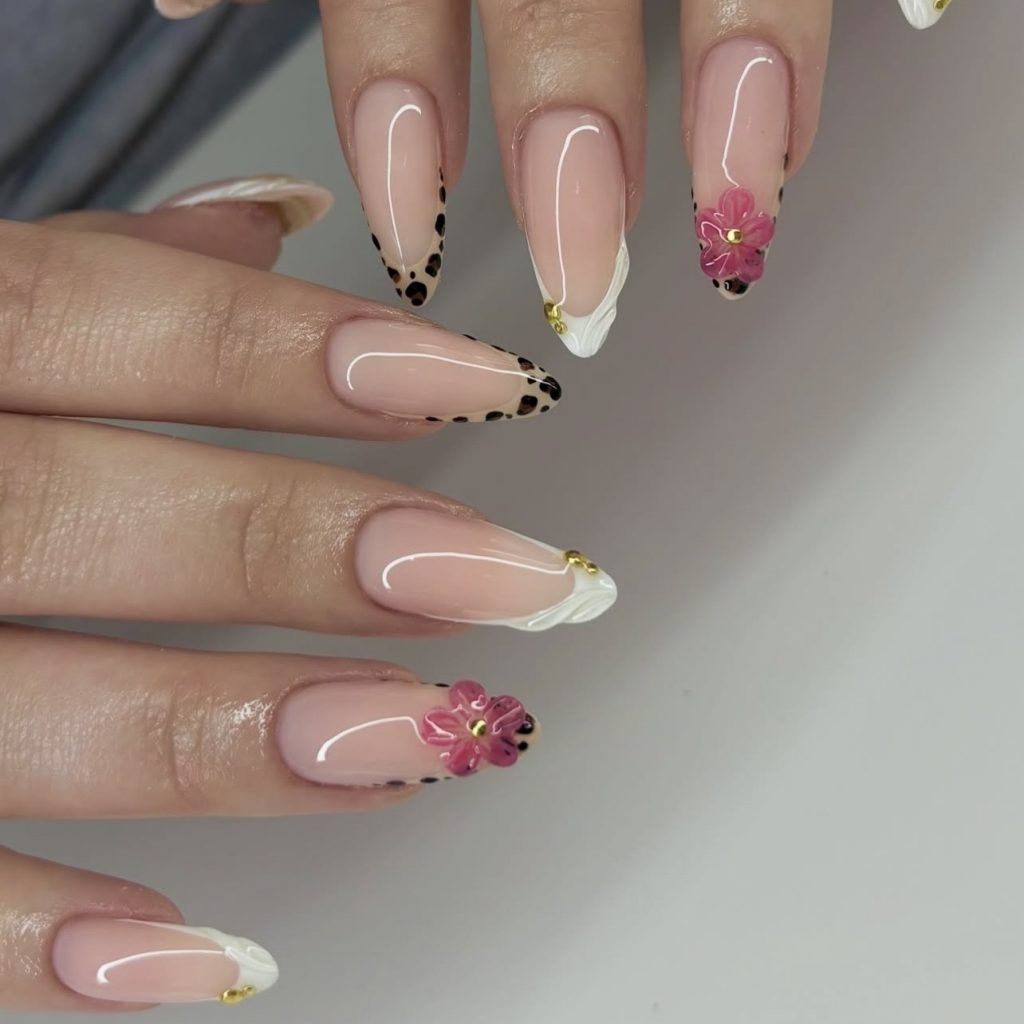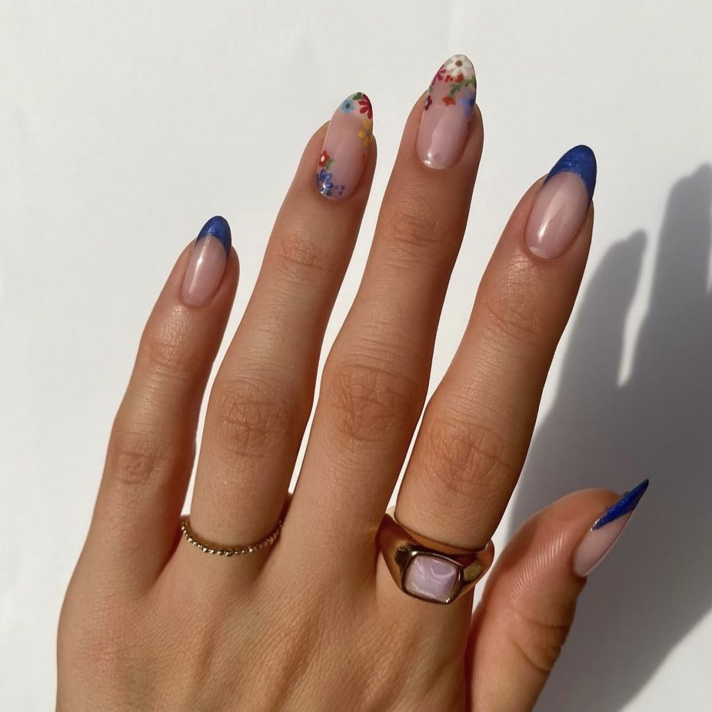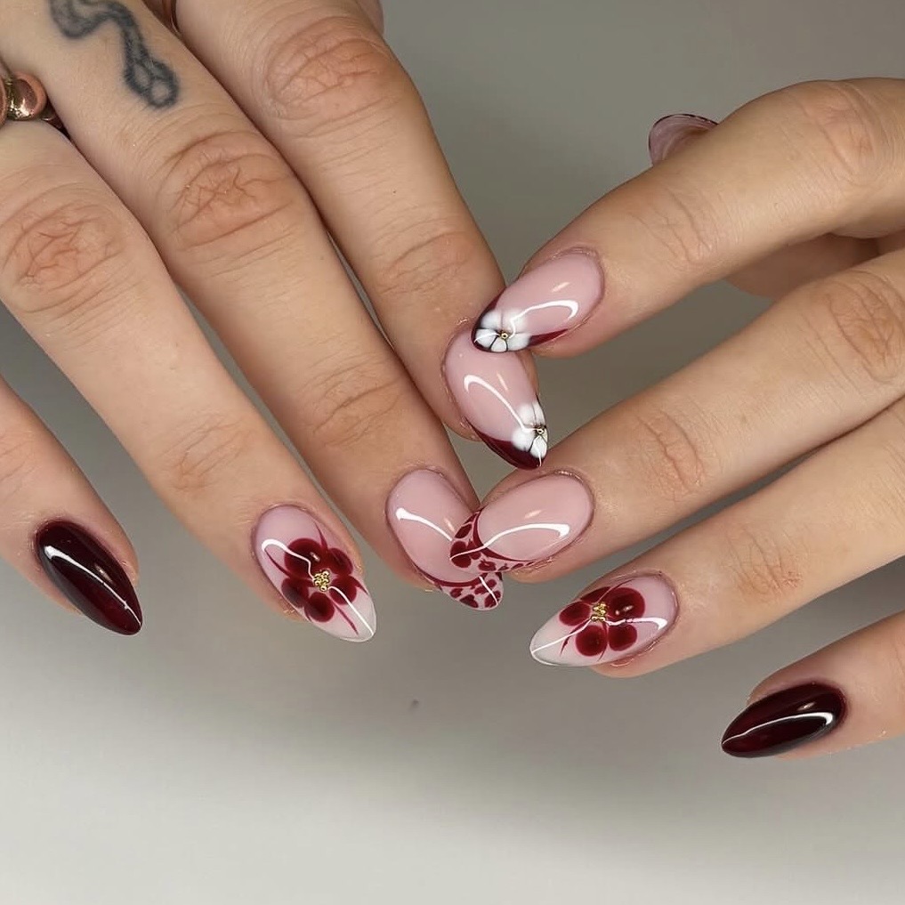 Здесь нет четких правил – можно нарисовать лепестки, нанести слайдеры или сделать объемные цветы с помощью геля. Самое главное – использовать по максимуму оттенков и выйти за рамки привычного дизайна.