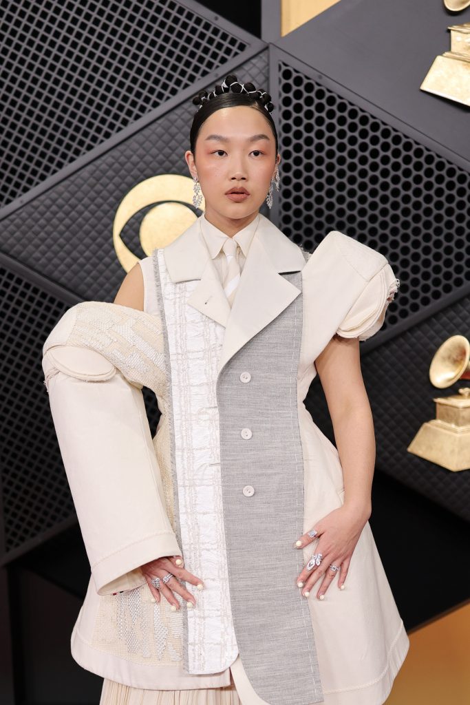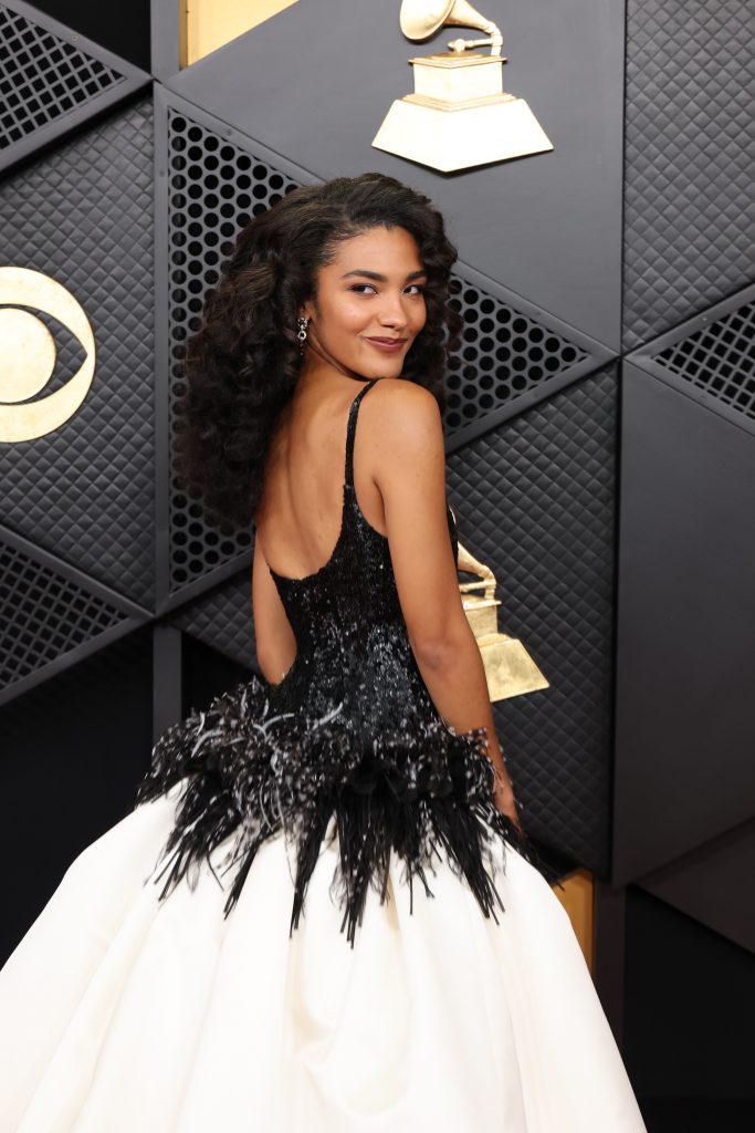 Несмотря на то что в 2026 в тренде отсутствие макияжа и общая расслабленность, которую мы видели на показах в Париже и на «Золотом Глобусе», «Грэмми» – это всегда негласный выход из рамок и немного перебор. Но даже при таком изобилии «мама» всех clean girls Хейли Бибер решила не изменять традициям и вышла на красную дорожку с аккуратным пучком и нюдовым лип-комбо.