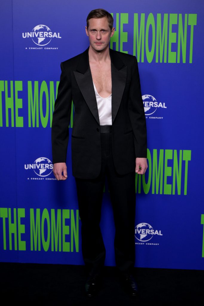 Не можем не отметить и Марго Робби под покровительством стилиста Эндрю Мукамала, который на этот раз выбрал для нее черное платье с черепами McQueen. Предупреждаем, это не тот самый образ, в котором была Кейт Мосс во время перформанса для шоу Black, а кастом из коллекции бренда Pre-Fall 2026. И переходим к лучшему мужскому выходу, который на этот раз принадлежит одному из самых модных мужчин прямо сейчас – Александру Скарсгарду, которого одевает стилист Гарри Ламберт, больше известный по своей работе с Гарри Стайлзом. Что до Александра, то он доказывает нам, что максимально глубокий U-образный вырез однозначно будет особенно актуален в этом сезоне.