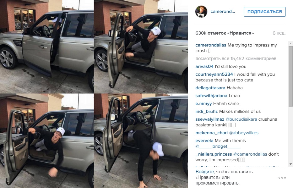 На прошлой неделе мы познакомили тебя с завораживающими фото Элизабет Гадд (22), которая снимает красоты далекой Канады. Сегодня же мы расскажем тебе о начинающем талантливом актере Кэмероне Далласе (21). Люди говорят, что он развит не по годам, а злопыхатели сетуют на его излишнюю слащавость. Как бы то ни было, у нас есть 10 причин, почему тебе стоит подписаться на юного Кэмерона.