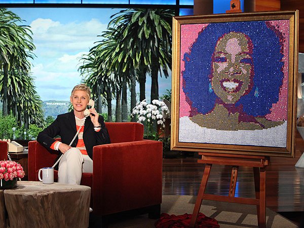 Опра Уинфри (63) — блестящий журналист. И Эллен Дедженерес (59) решила лишний раз напомнить ей об этом на 60-й день рождения ведущей. Она подарила ей ее портрет, выполненный стразами! Говорит, сделала сама, но мы что-то в этом сомневаемся.