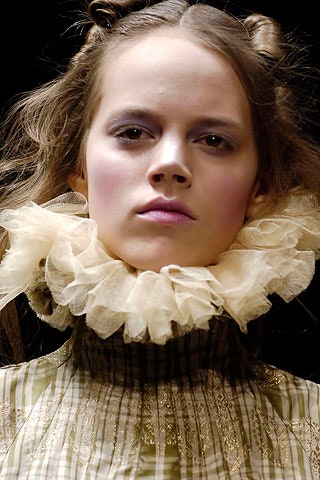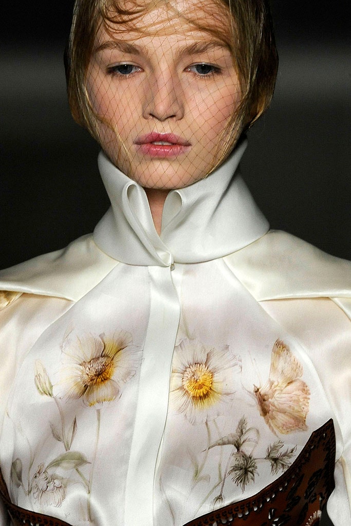По словам Маккуина, эта коллекция была посвящена простым и чистым вещам. Шоу выглядело, как античное представление с соответствующим макияжем и прическами. Снова белая матовая кожа и пластыри, изменяющие форму глаз, а сверху лиловые тени.