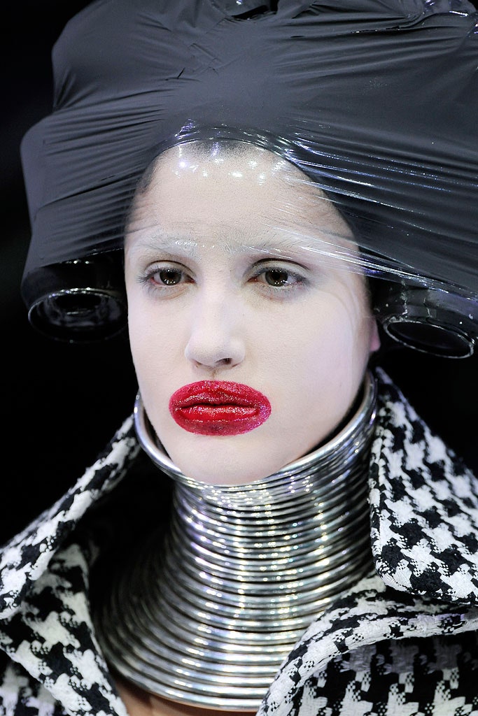 Яркие овальные губы в стиле австралийского художника Ли Бауэри и матовое белое лицо без бровей и намека на тени. Прически были сделаны из жестяных банок, а сверху замотаны пищевой пленкой. Однако некоторые критики увидели в этом неуважение к женщинам и сравнили моделей с надувными секс-куклами.