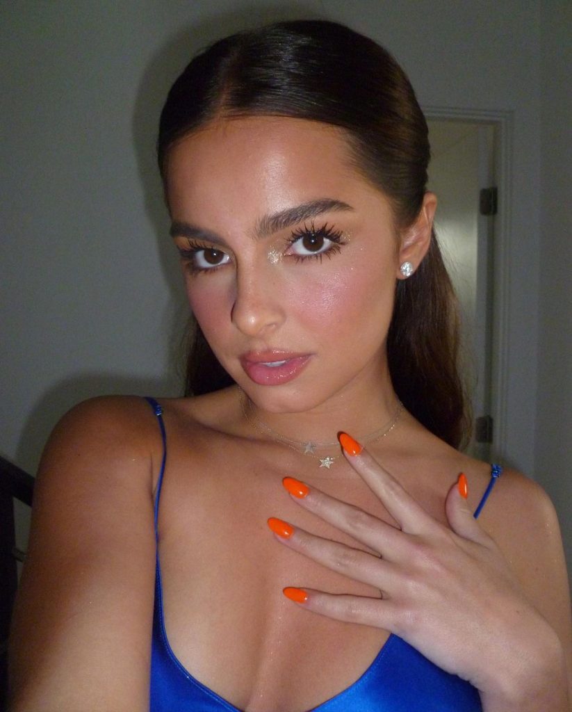 Любимый многими инфлюенсерами (Дуа Липа, Кендалл Дженнер, Джулия Фокс) британский бренд KNWLS выбрал в качестве основного элемента макияжа к своей летней коллекции цветные ресницы. Сделать их можно опять же с помощью конкрита, нанеся на щеточку, или цветной туши.