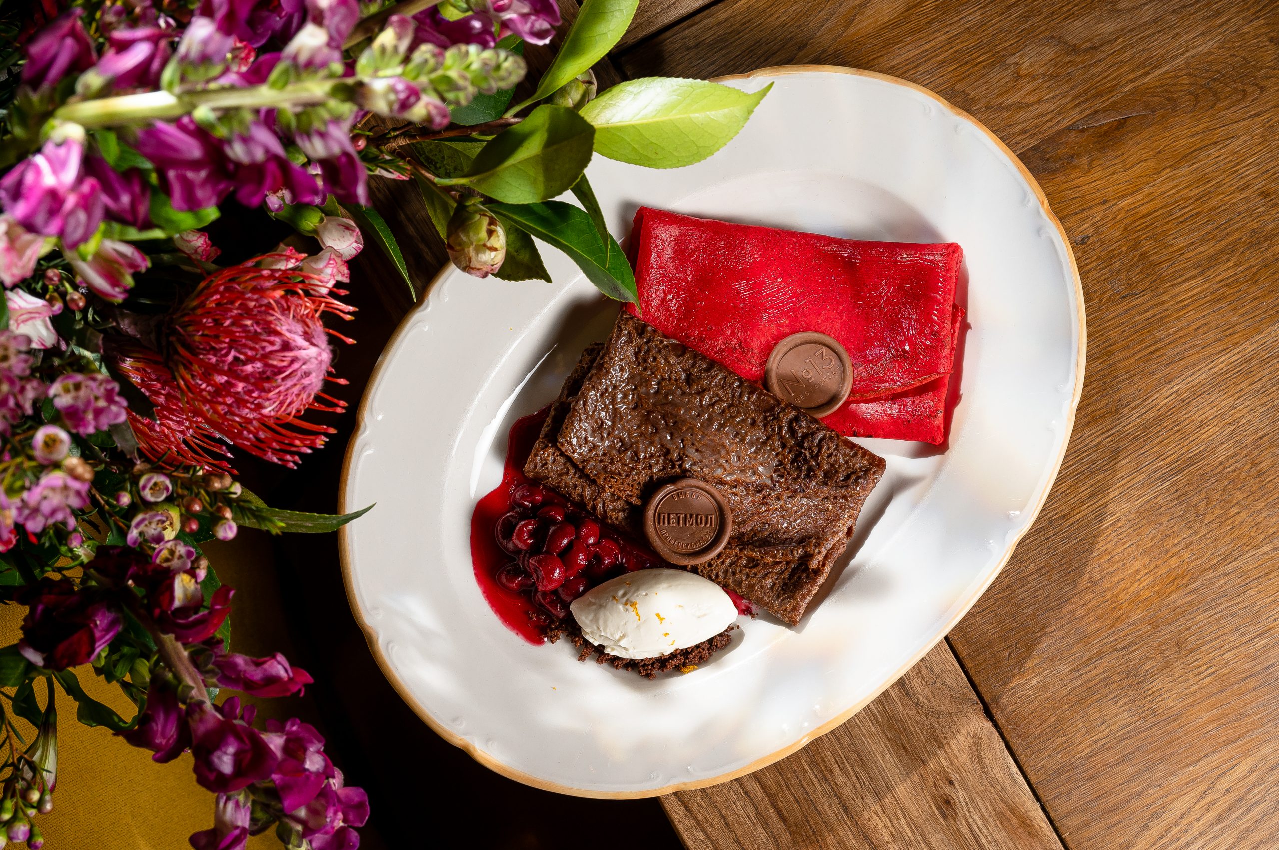 Restaurant №13 тоже объединился с «Петмол», чтобы разработать специальное масленичное меню. К столу поддаются блины-конверты на молоке с вишневым конфи и сливочным кремом, дополненные шоколадом и хрустящим крамблом. Помимо сладких вариантов предусмотрены и сытные начинки: пастрами с сулугуни и пармезаном, лосось с креметтой, авокадо и свежим огурцом.