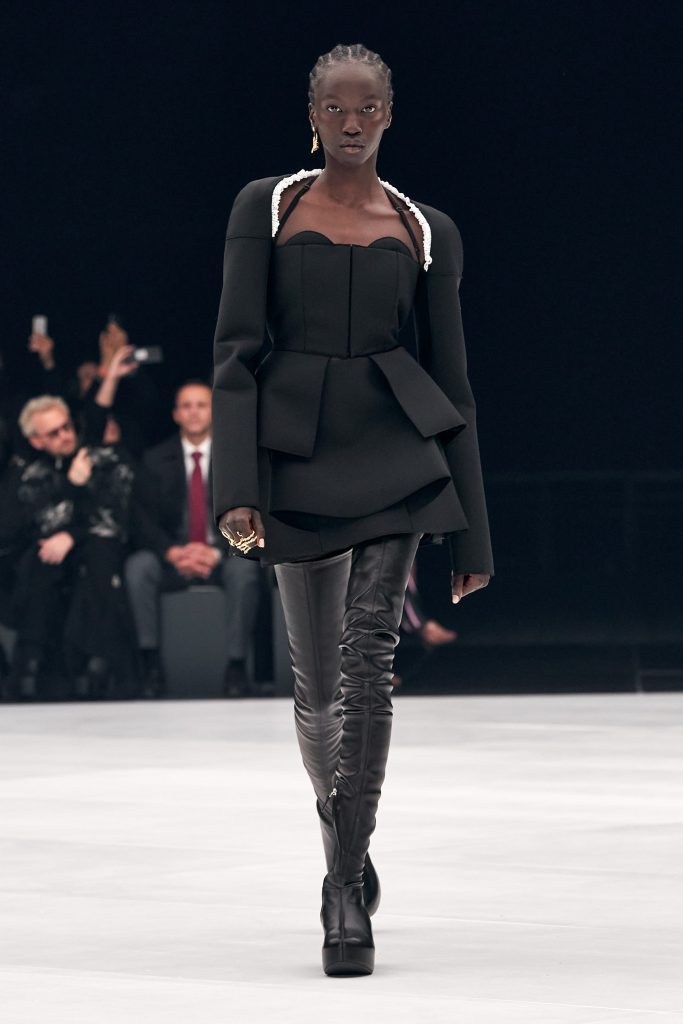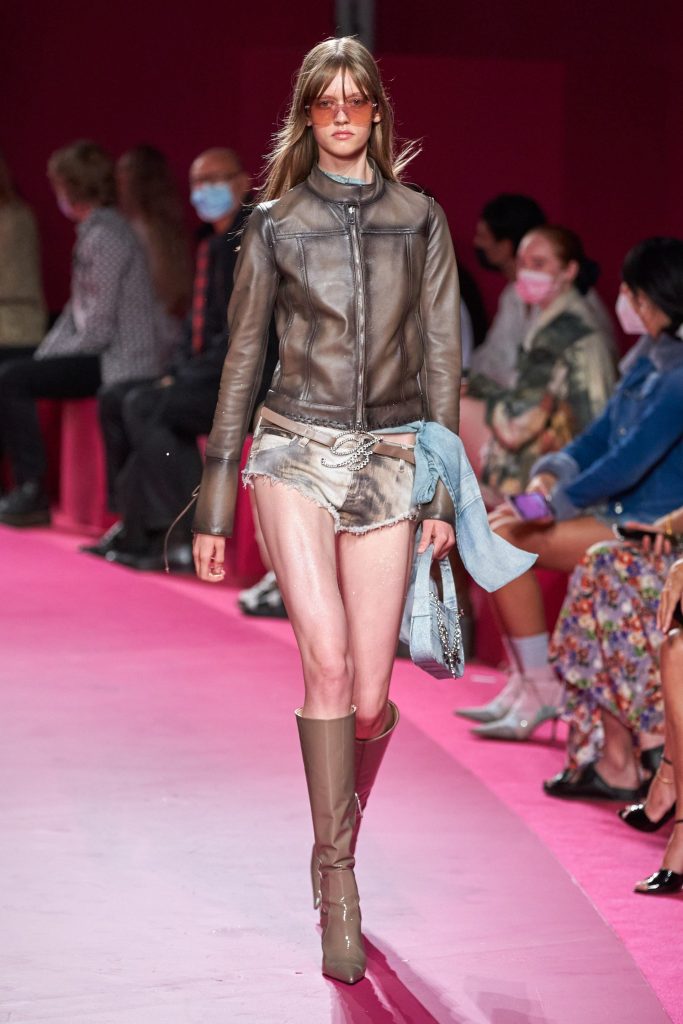 Массивные плечи и грубая кожа — лучший дуэт этого сезона. Поэтому в коллекциях SS 22 так много байкерских курток. Вариантов для выбора в этом сезоне достаточно: от модели в винтажном стиле, как у Blumarine и Miu Miu, до оверсайз косух, как у Balenciaga и Simone Rocha.