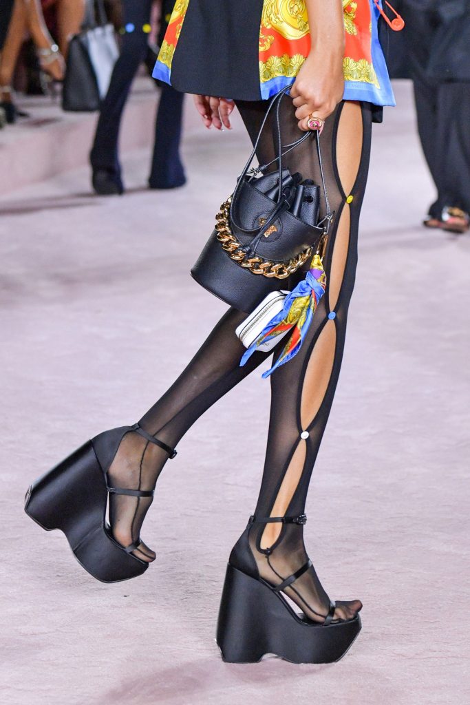 И все-таки за такой ажиотаж стоит благодарить Versace. Туфли на аномальной платформе, которые Донателла представила в коллекции FW 21, всего за пару месяцев успели заполонить весь Instagram. В новом сезоне дизайнеры расширяют список вариантов и предлагают нам носить сапоги, кроссовки и боссоножки в таком стиле.
