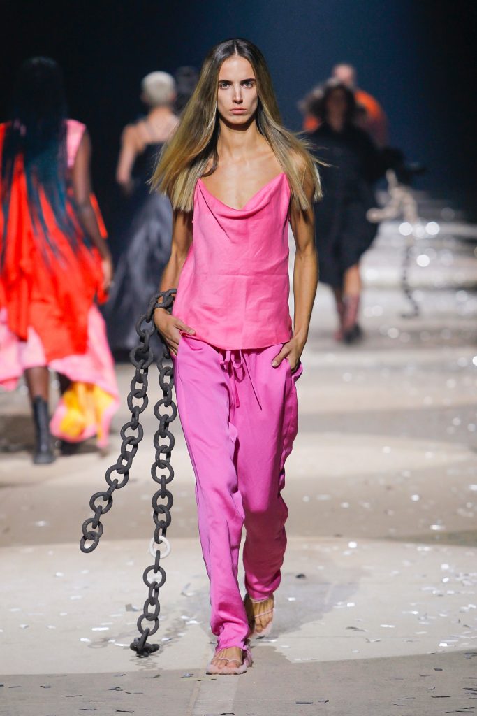 В новом сезоне ярких цветов стало еще больше. Дизайнеры сохранили тренд на зеленую палитру, а вместе с тем добавили в наш весенний гардероб ярко-желтый (его ты мог видеть на показе Proenza Schouler), оранжевый (мини платье в таком цвете показали Saint Laurent) и все оттенки розового. Правило для этого тренда только одно: не бояться миксовать оттенки и составлять яркие монохромные образы.
