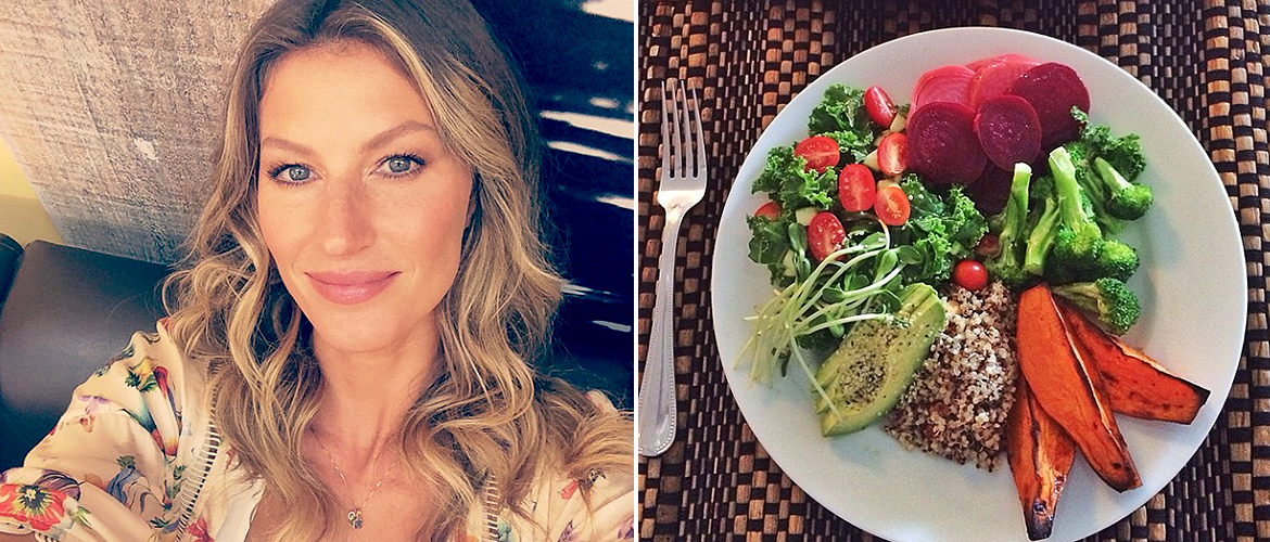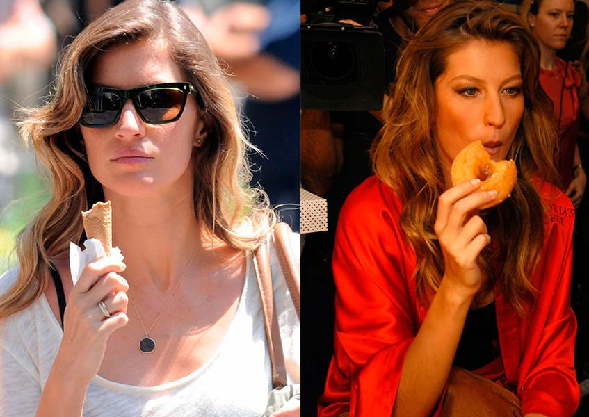Жизель питается исключительно здоровой пищей. Модель ест как можно больше овощей без термической обработки и не представляет своей жизни без мяса и чеснока. «Моя страсть к здоровому питанию передалась и моим детям. Они почти не едят сладкого, а старший, Бенджамин, когда ест брокколи, думает, что это десерт».