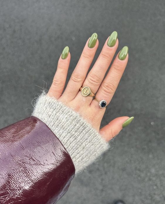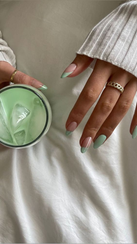 Если тебе хочется чего-то менее яркого, попробуй оттенок «зеленая матча». Он будет отлично смотреться и с френчем, и, если им полностью перекрыть ногти.