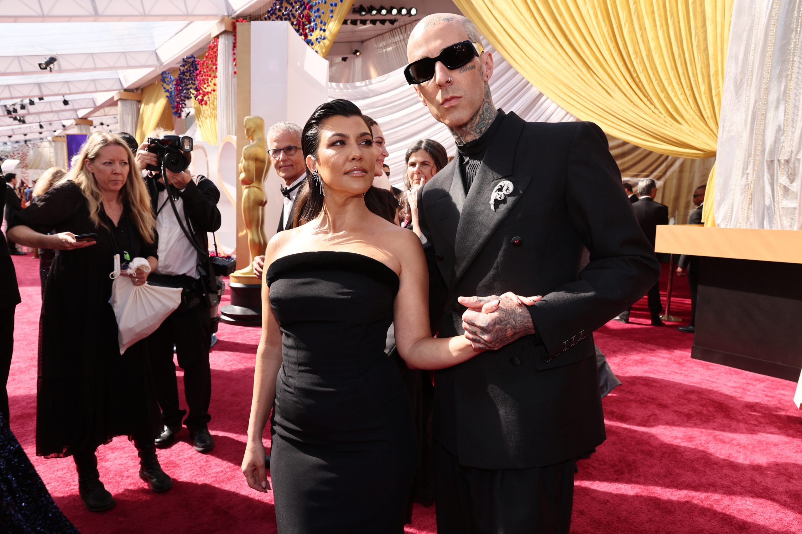 Отличилась и старшая сестра клана Кардашьян Кортни, который появилась на красной дорожке в винтажном платье Mugler под руку с Трэвисом Баркером. К слову, он для мероприятия выбрал костюм Maison Margiela.