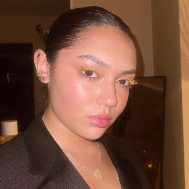 Яркая тушь для ресниц прошла долгий путь признания. И для тех, кто по ней скучал, у нас есть хорошие новости — она снова в тренде. Такой прием в макияже особенно любят Дуа Липа, Кендалл Дженнер и Джулия Фокс. Создать цветные ресниц можно опять же с помощью конкрита, нанеся его на щеточку, или цветной тушью.