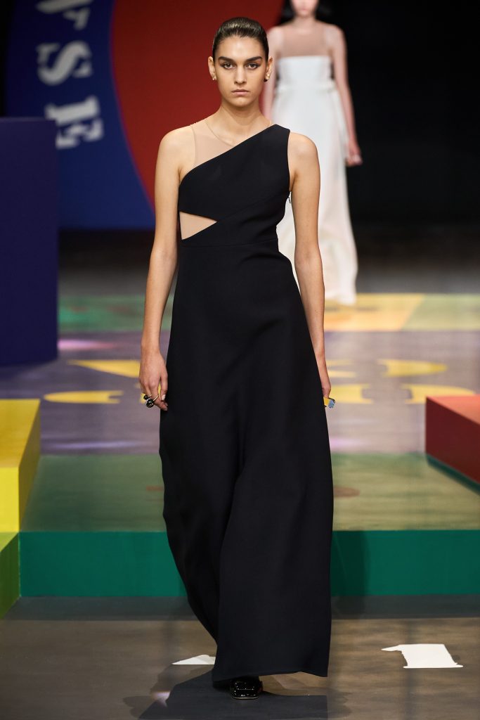 Если ни один день у тебя не обходиться без драмы, предлагаем для выпускного вечера выбрать соответствующее платье. Ты можешь вдохновиться последними показами или повнимательнее рассмотреть образы с красных дорожек. Черное платья – та вещь, которая говорить сама за себя, поэтому не стоит делать слишком сильный акцент на аксессуары. Драматичный образ мы можешь дополнить чем-то одним, например, объемными серьгами, крупным браслетом или даже байкерскими перчатками (как на показе David Koma).