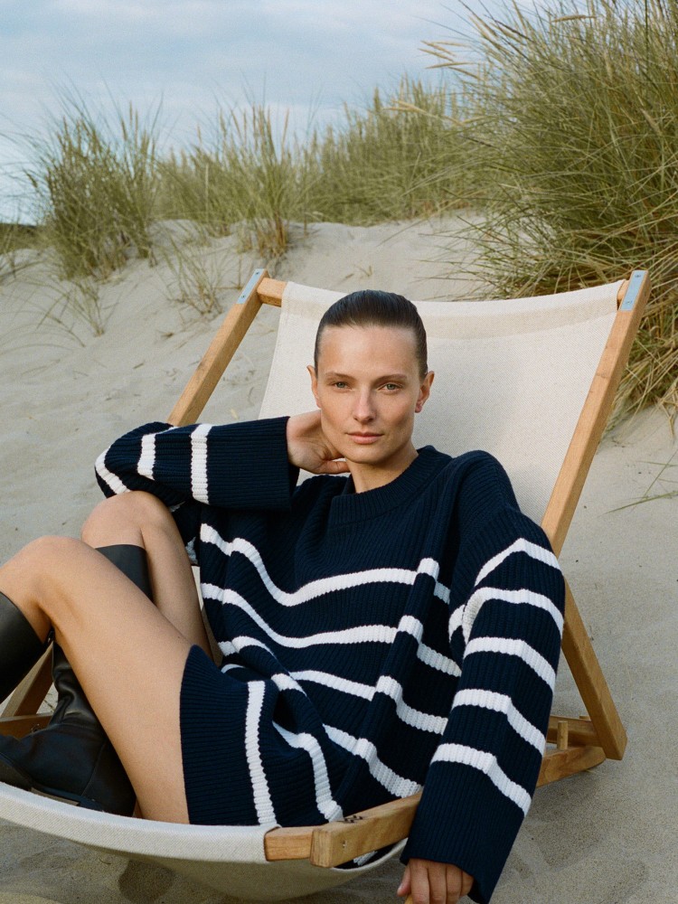 И снова возвращаемся к стилю Алекс и выбираем уютный кашемировый свитер в полоску. Стилисты проекта отдают предпочтение модели из коллекции Saint Laurent за 1150 долларов.