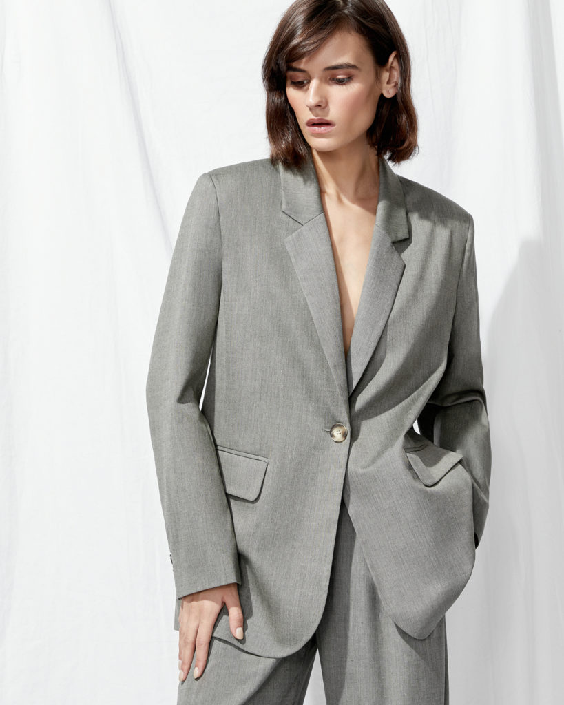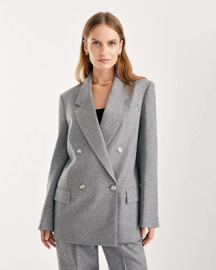 Благодаря папарацци у нас есть возможность заглянуть за кулисы продолжения проекта и рассмотреть аутфиты Дженнифер Энистон. Среди них мы заметили классический серый пиджак — абсолютный мастхэв осени. Но если Алекс носит его в дуэте с широким ремнем, то мы советуем не дополнять модель аксессуаром, сохранив эффект оверсайза.