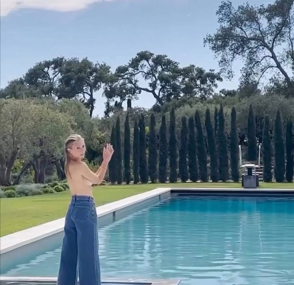 Оскароносная звезда продемонстрировала свое подтянутое тело, позируя в одних лишь джинсах у бассейна. Съемки, кстати, проходили в ее же особняке в Калифорнии.