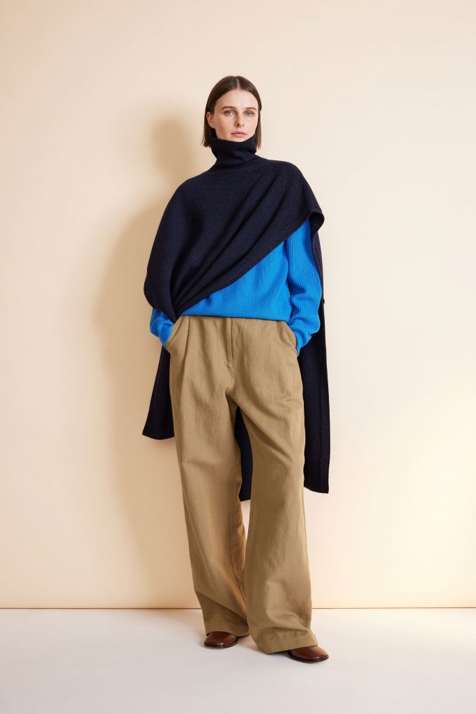 Один из главных цветов сезона – тихоокеанский синий. Он появился в осенне-зимних коллекциях Dion Lee, Off-White, Christian Siriano, а ещё Anteprima, Louis Vuitton, Lanvin и Tom Ford. Судя по этому внушительному списку, можно запросто догадаться, что этот цвет не останется незамеченным в этом сезоне. Как его носить? Дизайнеры делают ставку на сочетание тихоокеанского синего с лаконичным черным. К примеру, рубашку насыщенного оттенка можно стилизовать с темными брюками прямого кроя и лоферами на массивной подошве.