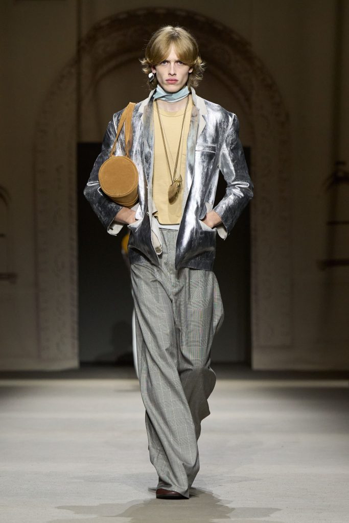 Металлик, а точнее металлизированная ткань, уже не воспринимается исключительно как материал для вечерних выходов. Этой зимой он органично вписывается в дневные образы, если уравновешивать его более спокойными фактурами. Если такой вариант в целом кажется тебе слишком смелым, начни с аксессуаров: перчатки или небольшая сумка легко впишутся в повседневный гардероб. И помни, металлик не требует поддержки – он самостоятелен сам по себе и всегда работает как яркий акцент.