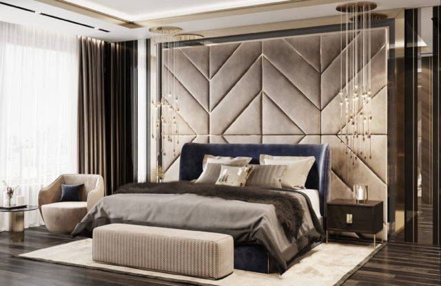 «Могут быть мягкими текстильными (бархат, велюр, замша, алькантара) и шпонированными – из дерева ценных пород. Можно комбинировать различные текстуры и геометрию! К тому же такие панели многофункциональны – они позволяют реализовать скрытые решения: например, двери или встроенные шкафы».