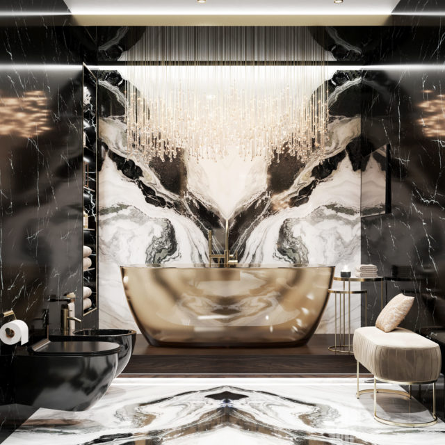 «Всеми любимый мрамор придает интерьеру неповторимый лоск. А для тех, кто сомневается, что сможет позволить себе натуральный мрамор, сейчас есть отличное решение – широкоформатный керамогранит. Порой он ничуть не уступает в эффектности настоящему мрамору. С ним гораздо легче работать, и такой выбор поможет значительно сократить бюджет».