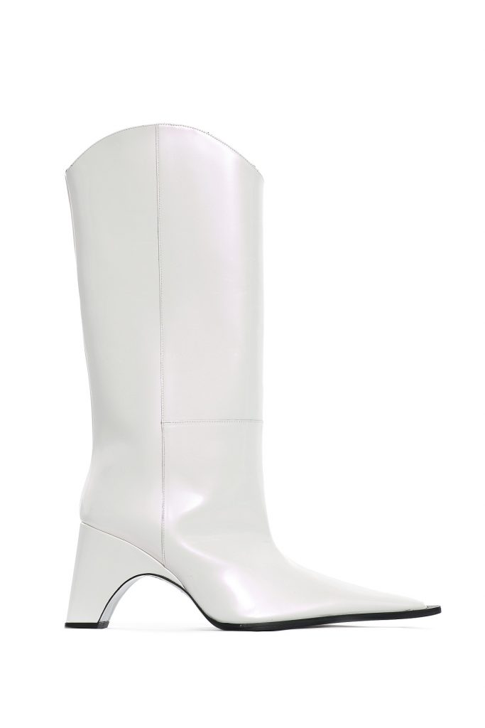 Экстремальные ботфорты и мини-юбки – главные тренды этого года. Так почему бы не совместить их в одном свадебном образе! Такой неизбитый дуэт добавит аутфиту нотку бунтарства, а еще не даст замерзнуть даже в самый холодный день осени. Если тебе хочется выкрутить хулиганскую эстетику до абсолюта, сверху можно накинуть байкерскую косуху белого цвета. А если ты относишься к приверженцам классики, ботфорты можно замиксовать с юбочным костюмом-двойкой.