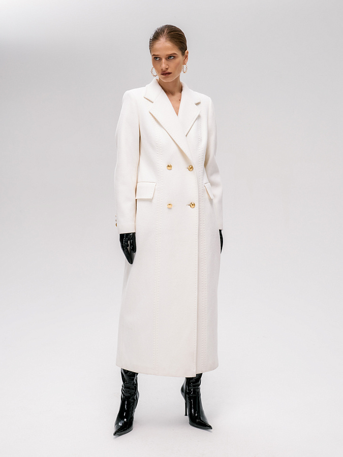 Если под венец ты планируешь пойти в сдержанном платье без пышной юбки и ансамбля рюш и кружева, мы советуем утеплиться с помощью длинного белого пальто (желательно с акцентными золотыми пуговицами). Образ можно дополнить высокими сапогами, которые потом сменить на туфли на платформе.