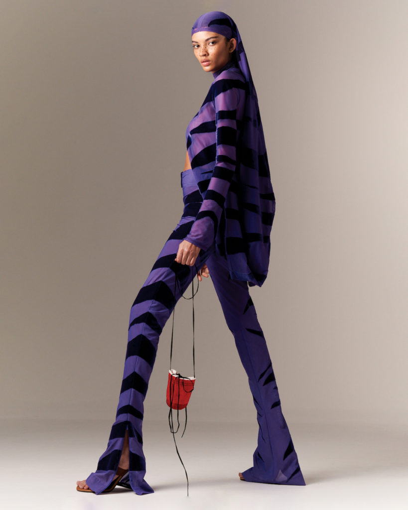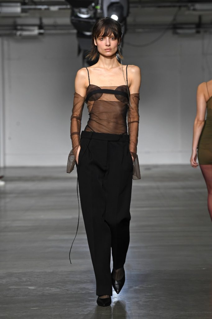История успеха Нэнси Дояки во многом началась благодаря Белле Хадид. Когда в 2020 году на премии MTV VMA модель появилась в полупрозрачном топе и брюках на низкой посадке, ее образ еще несколько дней обсуждали чуть ли не все мировые издания. Конечно, у всех был один вопрос: кто был создателем аутфита? Тогда мы и узнали о Нэнси Дояке – британском дизайнере и выпускнице легендарной Central Saint Martins. В основе ее бренда лежит эстетика 90-х и вдохновение Хельмутом Лэнгом: Нэнси работает с полупрозрачными текстурами, делает ставки на неожиданные разрезы и выглядывающие бра.