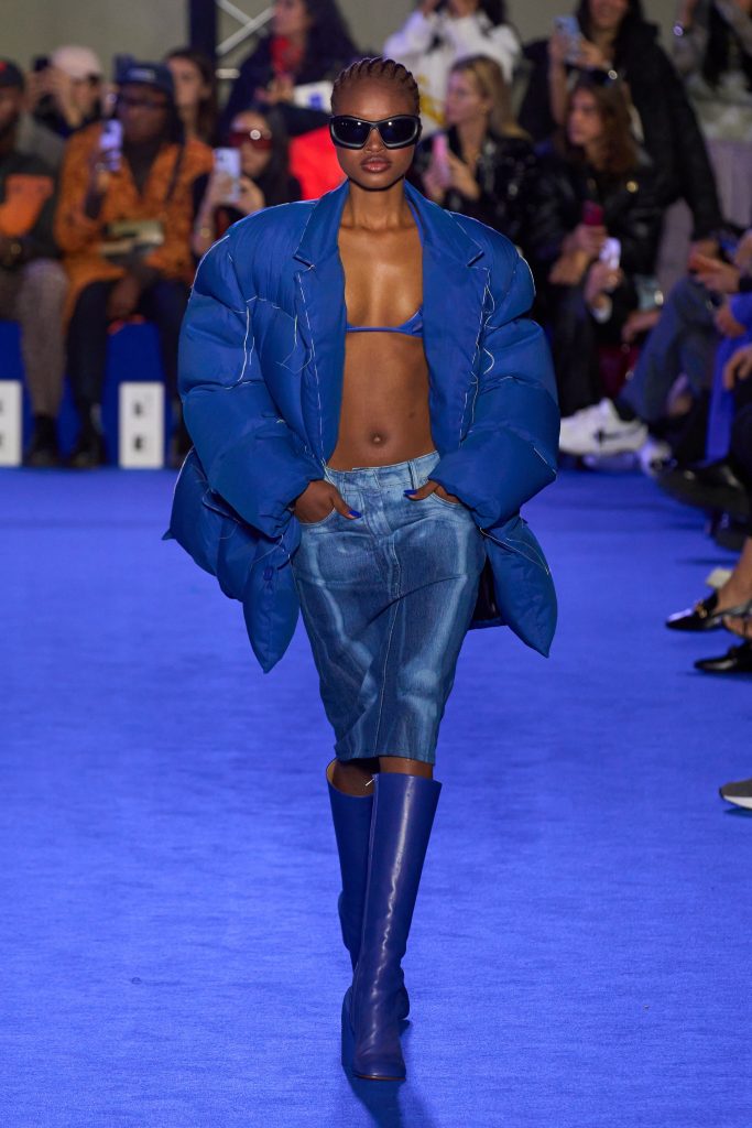 Несмотря на то, что новый Off-White – это уже не Вирджил, коллекция получилась успокаивающе красивая. А ее главным акцентом стал синий цвет – модели томно дефилировали по подиуму насыщенного оттенка в невероятных образах в тон (вполне возможно, очень скоро наш ассоциативный ряд «Valentino – розовый», «Bottega Veneta – зеленый» пополнится еще фирменным синим Off-White).