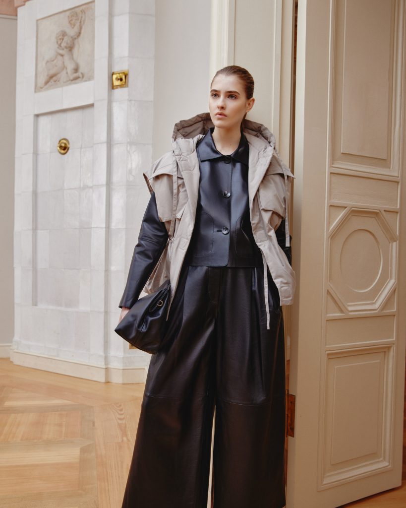 Для похода на выставку советуем подготовить особенный образ – простой и лаконичный. В новой коллекции «Снежной Королевы» как раз есть подходящие варианты. Советуем отдать предпочтение пальто с накидкой, черным прямым брюкам (которые будут идеально сочетаться с массивными лоферами) и объемной сумке через плечо.