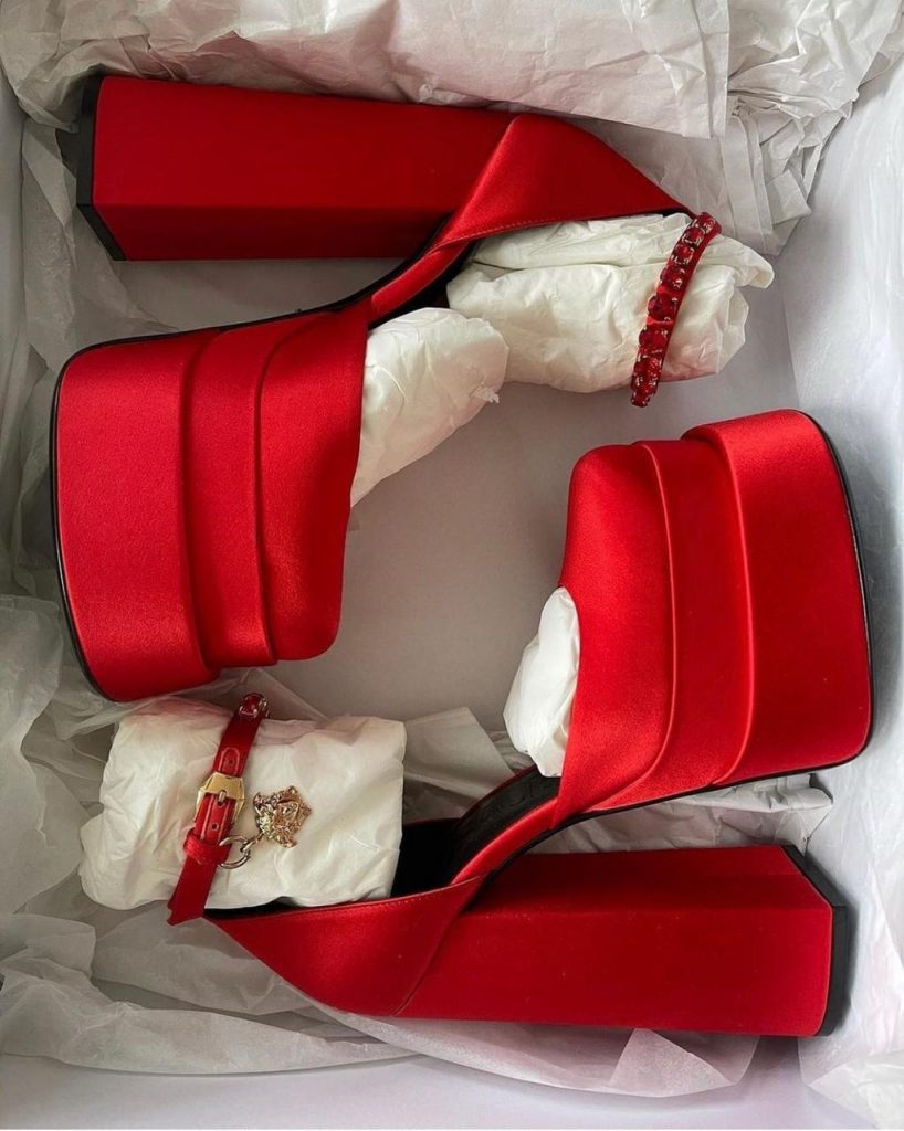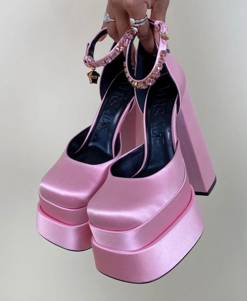 Тем, кто говорил, что Versace уже давно не выпускают it-вещи, Донателла Версаче решила доказать обратное. В 2021 году название модного Дома часто звучало в разговорах модной тусовки. И не только из-за громкой коллаборации с Fendi. В коллекции Fall 2021 Донателла представила туфли на огромной платформе в желтом, розовом, красном и черном цветах. Модель почти сразу стала самой инстаграмной парой года, а масс-маркеты тут же подхватили тренд и выпустили бюджетные альтернативы. Можем смело заявить, что в этом году туфли Versace по своей популярности могут обойти даже трендовые Prada с острым мысом (да простят нас Миучча Прада и Раф Симонс). Стоят они 95900 рублей.