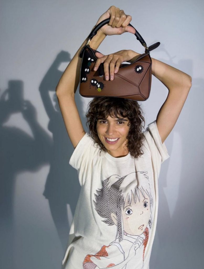Мы уже рассказывали тебе о той самой сумке Loewe Puzzle, которая с легкой руки героев стритстайла и модных блогеров стала самой желанной it-bag года. По популярности ее может обогнать разве что точно такая же сумка, но из коллаборации Loewe X «Унесенные призраками». Вообще о том, что модный Дом готовит коллекцию с японской анимационной студией Ghibli мы начали догадываться еще несколько недель назад (спасибо тонким намекам в Instagram Loewe). В капсулу вошли худи, свитера, кардиганы, шорты и футболки с культовыми героями мультфильма «Унесенные призраками». А та самая сумка Puzzle с чернушками успела попасть в вишлист всех инфлюенсеров. Кстати, стоит она 185000 рублей.