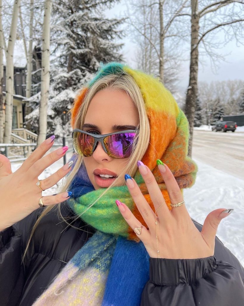 За возрождение хромированного маникюра, популярного в 2010-х годах, мы благодарим Натали Минерву – нейл-мастера сериала «Эйфория». В одном из эпизодов нового сезона Мэдди (в исполнении Алексы Деми) появилась с длинными «металлическими» ногтями, а уже на следующий день количество поисковых запросов на такой маникюр резко возросло. А теперь два тренда слились воедино, и получился хромированный френч.