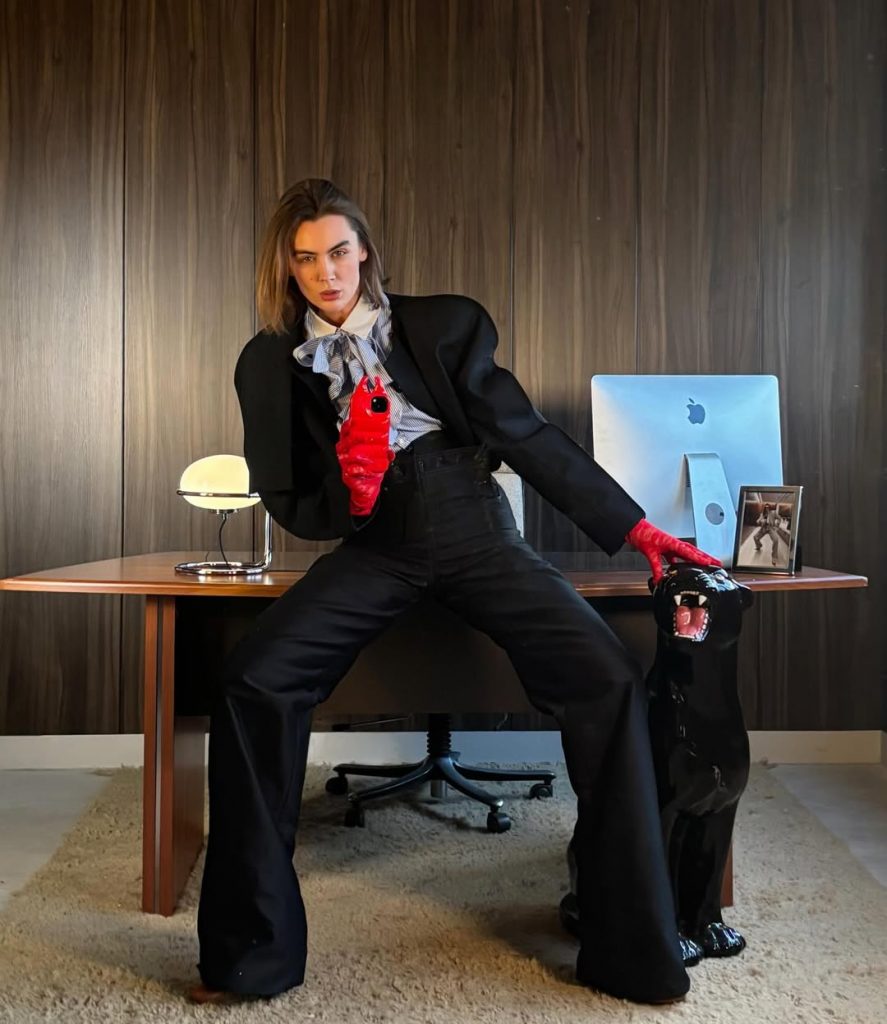 Первое, что можно сделать, чтобы аутфит не смотрелся скучным, – добавить аксессуары. Речь о ремнях, платках, сумках, головных уборах, а еще брелоках и заколках на голову. К примеру, обычный черный брючный костюм круто дополнят трендовые очки в стиле гик-шик, бордовая сумка с обвесом и ремень с акцентной пряжкой. Вроде все законно, но выглядит как на картинке в Pinterest.