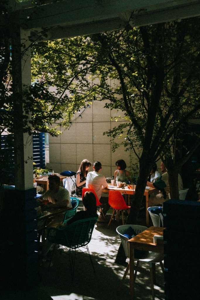 Каждый раз это будто какое-то волшебство: идешь по тихой, еще не затронутой московским благоустройством улице, заходишь в калитку, как из советских фильмов – и оказываешься в светлом дворе с верандой-оранжереей, полном модных людей и приятной музыки. То ли Берлин, то ли Москва, в прошлом прячется настоящее, и все переплетается. Удивительное сочетание.