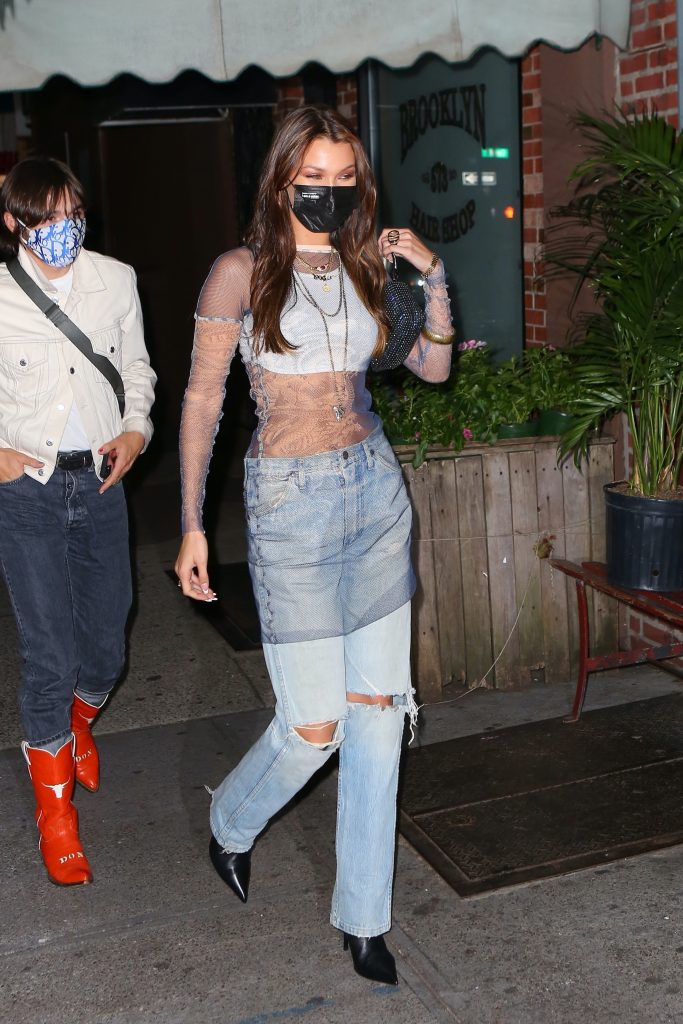 Что бы не говорили инста-стилисты (поверь, им не всегда стоит доверять), Белла Хадид показывает, что рваные джинсы все еще могут стать частью стильного образа. Звезда сочетает их с безразмерными бомберами, кроп-топами и растегнутыми рубашками или дополняет прозрачными текстурами (идеальный вариант для вечеринки).