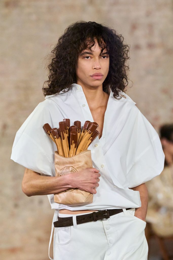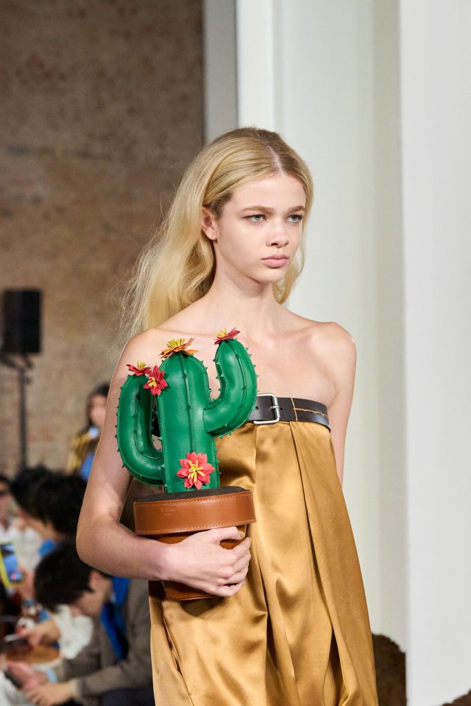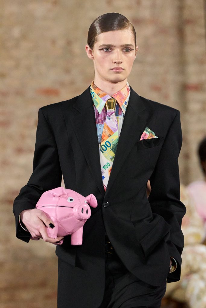 Moschino не может быть плохим, ведь он размывает грани между плохим и хорошим – именно за это мы его и любим. Это шоу, само собой, не стало исключением. Однако абсурдных образов стало меньше, и они превратились во что-то более носибельное. К счастью, сумки этой участи избежали. Креативный директор бренда Адриан Аппиолаза по-прежнему радует нас клатчем в виде чурроса, сумкой-кактусом и розовой свинкой-копилкой.