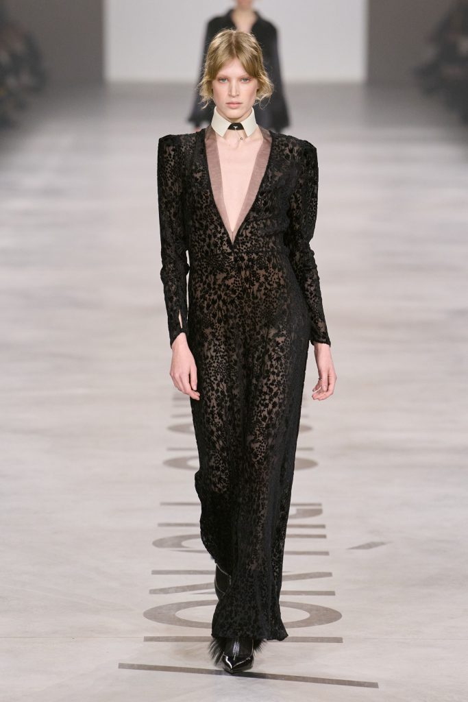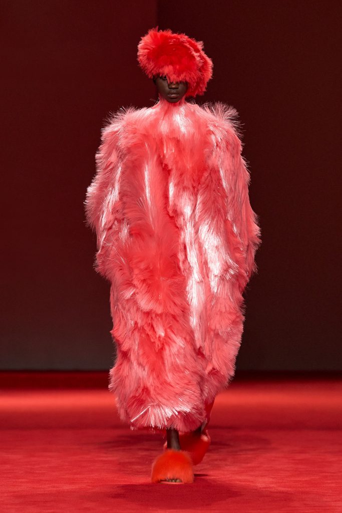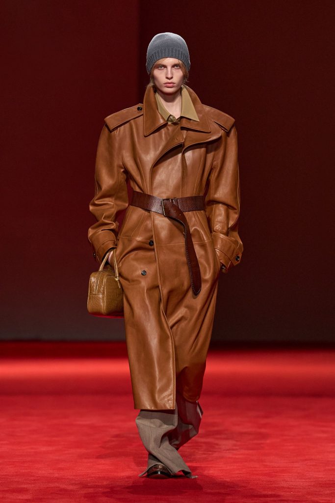 Bottega Veneta во главе с Луизой Троттер решила не менять курс, повторяя успех прошлой коллекции. Мы вновь видим, каким должен быть тейлоринг в 2026 году: акцентные плечи, подчеркивающие силуэт детали и, конечно, аксессуары. Стекловолокно, которое в какой-то степени и принесло Луизе успех во время ее дебютного шоу, также не было списано со счетов. Мы снова видим шубы, шапки и даже туфли из этого материала – и, видимо, именно в работе с ним дизайнер чувствует себя особенно уверенно. Отдельно стоит отметить шапки бини, которые стали ключевым аксессуаром практически каждого выхода модели. В сочетании с настолько выверенными силуэтами такие головные уборы органично дополняют образы, немного расслабляя их и напоминая о том, что вся коллекция – прежде всего носибельная.