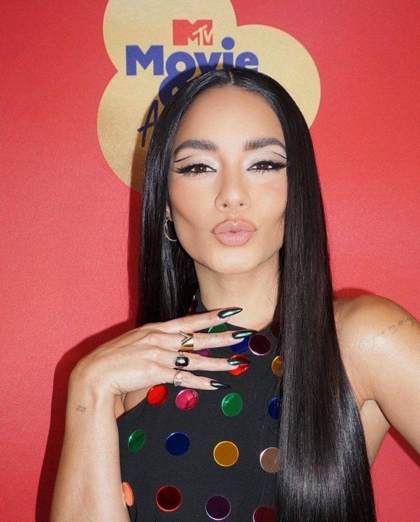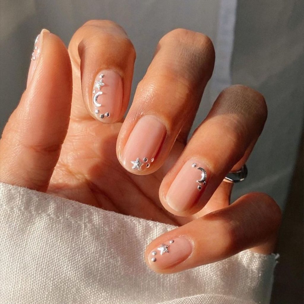 Хромированный серебристый маникюр этой осенью по-прежнему в моде. Но если ты не хочешь ходить с полностью «металлическими» ногтями, есть и другие варианты. Например, сделать хромированный френч – маникюр, который особенно любят Дуа Липа, Меган Фокс и Бейонсе. Или добавить в нейл-арт небольшие серебристые 3D-элементы.