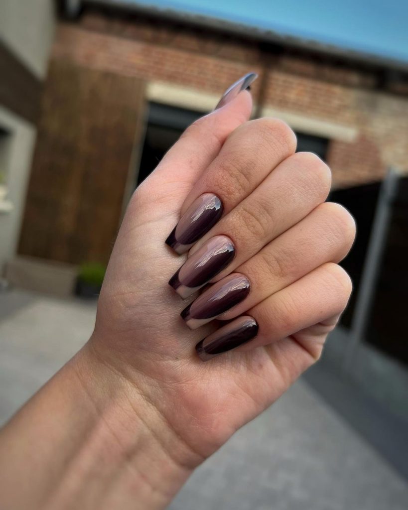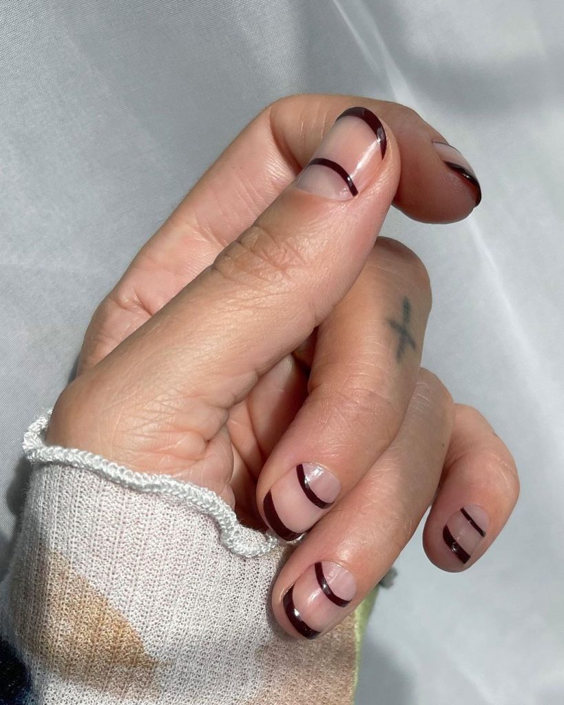 С приходом осени Хейли Бибер предложила еще одну итерацию маникюра – ногти в виде пончиков с шоколадной глазурью. Так что в новом сезоне можно смело отходить от классики и добавлять «глазурь» не только к нюду, но и к более темным оттенкам.