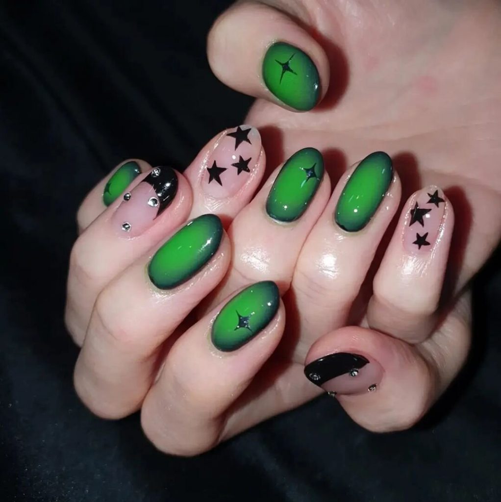 Благодаря переливам зеленого, синего и фиолетового оттенков ногти-хамелеоны можно спутать с драгоценными камнями.