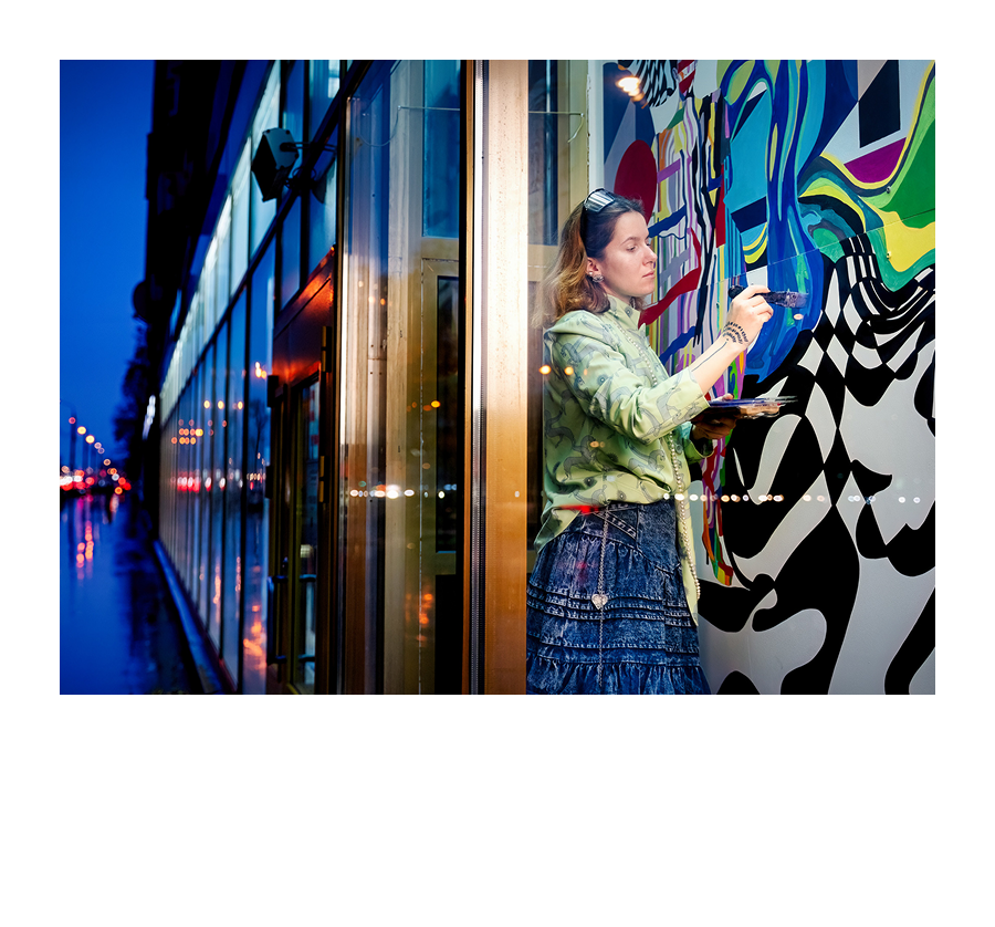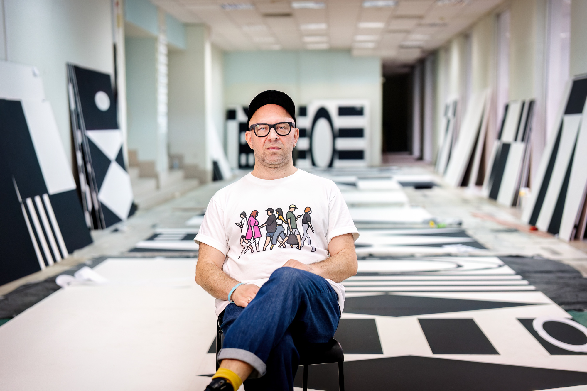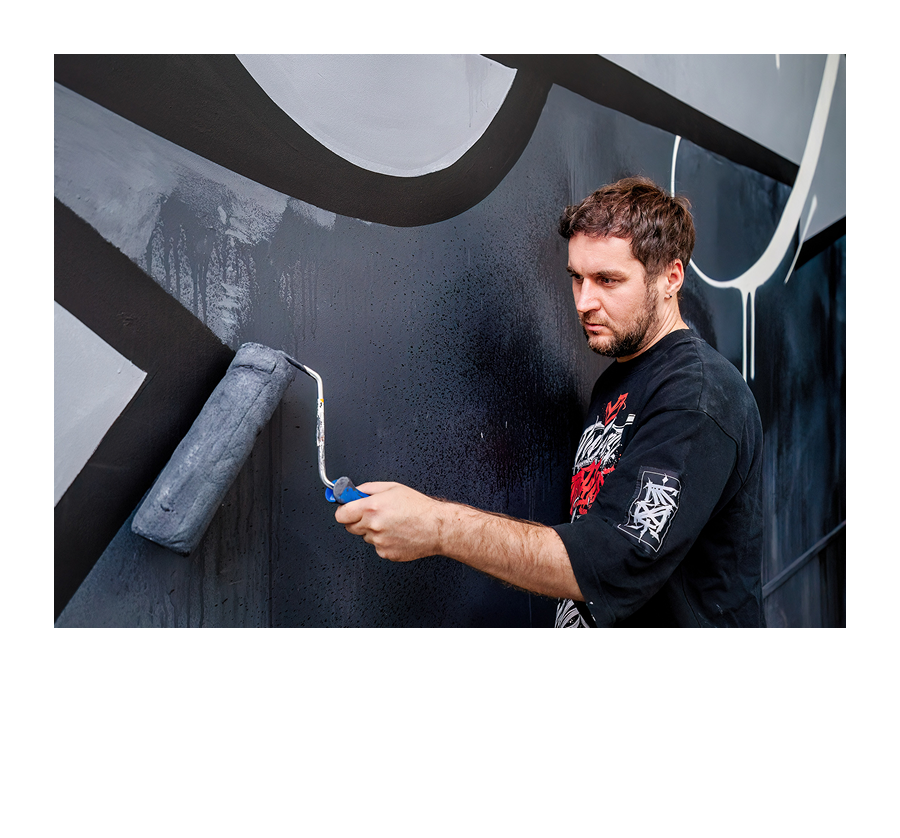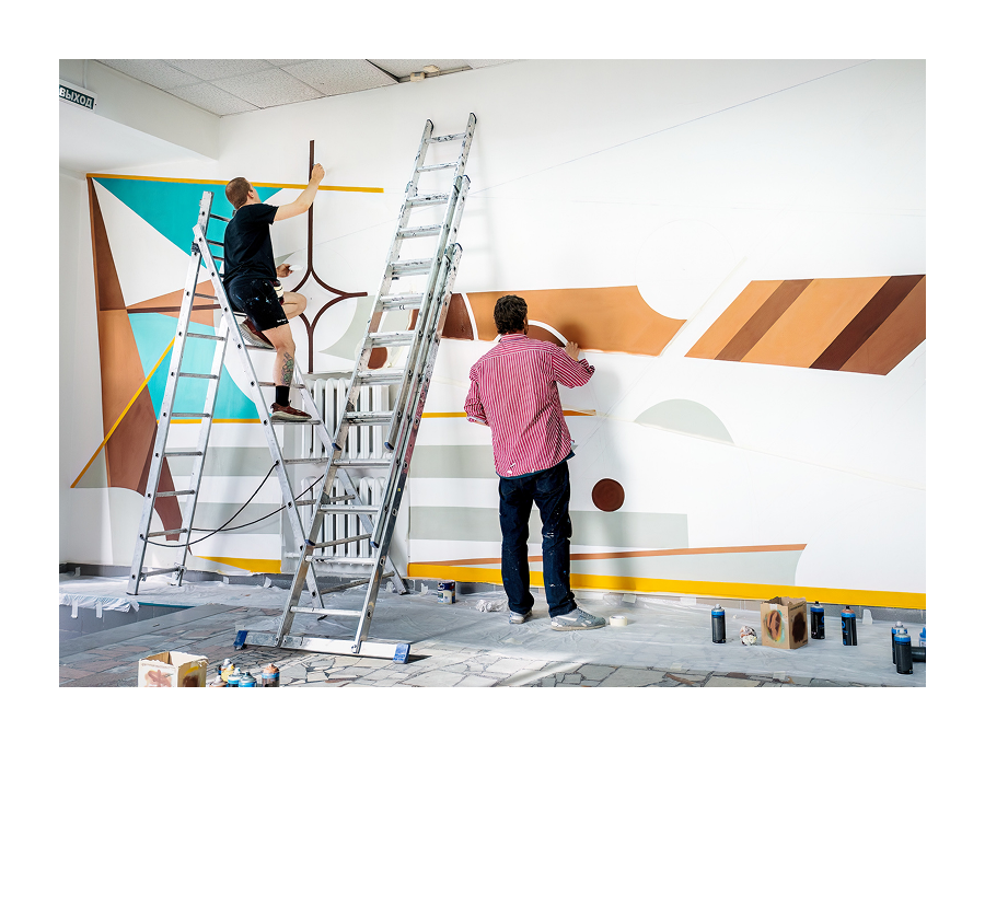 Строгая сетка черных рам витрины на фасаде здания подсказала идею монохромной геометрической композиции. Но, работая над проектом, я учитывал не только конструкцию витрины, но и современное архитектурное окружение. Также масштаб работы впечатлял: около 200 квадратных метров. Проект «Контуры Культуры» дался нелегко, но при поддержке команды и организаторов все сложилось, и итог стоит того: результат превзошел мои ожидания, фасад заиграл новыми красками. Это новый большой и классный public-art в Москве, и, я уверен, чем больше подобных инициатив в городе, тем лучше для него, для его жителей и для художников.