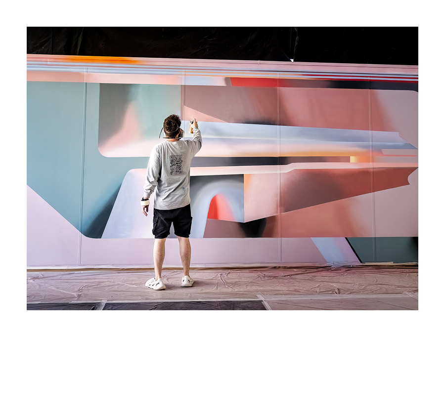 В основе каждой работы лежат минималистичные абстрактные композиции на стыке графики и реализма. Фигуры преломляют свет, растворяются в цветной дымке и являются поэтичной аллегорией на наше движение в будущее. Прогресс все ускоряется и как будто скоро достигнет скорости света, а брутальность фигур и их динамичные формы напоминают о нашей жизни, полной стремлений и мечтаний в эфемерном пространстве грез.