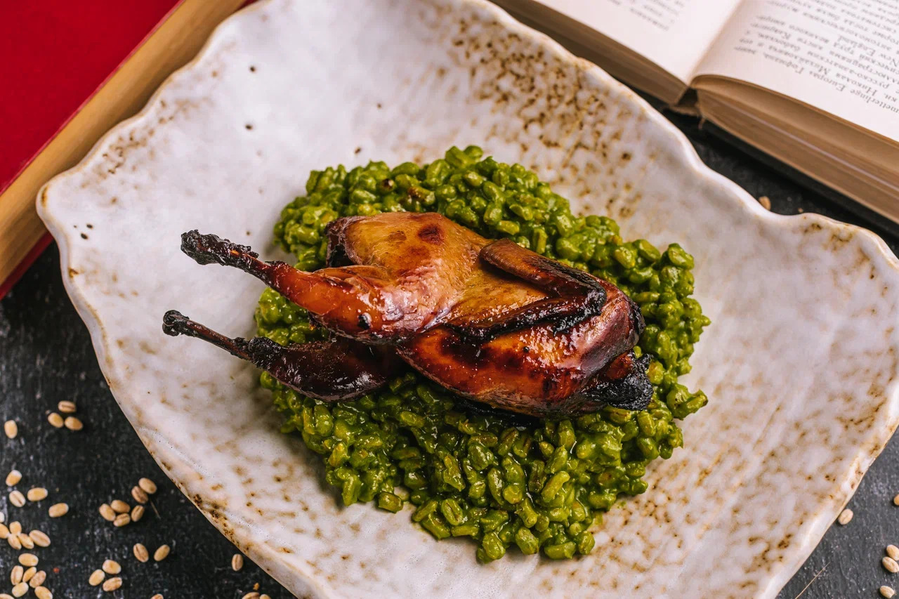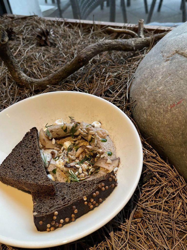 В меню упор сделан на сезонность и локальные ингредиенты. Иногда настолько локальные, что выращены прямо в ресторане – микрозелень на вертикальной ферме в стене или помидоры над баром например. Особенное внимание Колодяжный уделяет дикоросам, ягодам и грибам, так что в меню можно легко встретить масло с пылью мухоморов, паштет из кореньев и печени, ризотто из корешков капусты и с десяток видов грибов в разных блюдах (о существовании некоторых ты точно не подозревал).